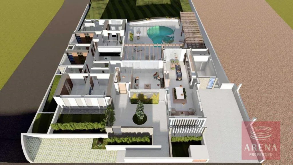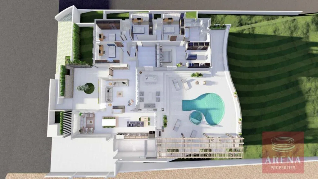 • Building Permit for the 5-bedroom house, a swimming pool, general communal areas, a kitchen, a wardrobe, service areas (totaling 255 sqm), and a semi-basement of over 350 sqm for use as a garage and storage spaces.