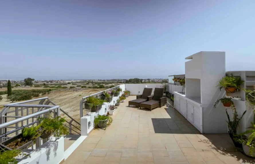 Discover a new level of Mediterranean living with this stunning 2-bedroom penthouse in Oroklini – a serene retreat tucked away on a quiet cul-de-sac, where all you hear is the sea breeze and birdsong.